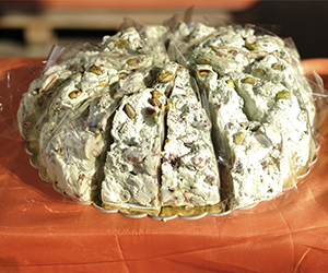 “Torrone” is a typical Italian treat; It is consumed mostly in Christmas period. Its name comes from the Latin verb “torrere” (to toast) meaning to toast this dry fruit. Produced with egg whites, honey, sugar and almond which constitutes the base for every kind, then flavoured with nuts, peanuts, hazelnuts or pistachios, and covered by two layers (one on the top, one on the bottom) of wafer. Gluten free product.