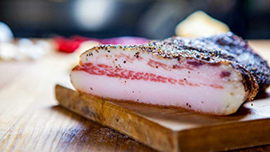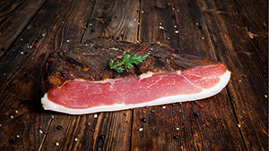 Is a typical Italian, Austrian and German raw-cured meat. It originates from the region of “Tirolo” and generally sourced from the pork thigh, then cold smoked. Very known in “Alto Adige”, “Trentino”, “Veneto”, “Valtellina”, “Valle d’Aosta”, “Friuli”, “Carinzia” and “Tirolo”.