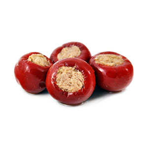 Ideal for aperitif. Chili peppers stuffed with tuna fish, capers or anchovies are handmade and stuffed one by one. They are not very spicy and therefore could be eaten in only one bite.